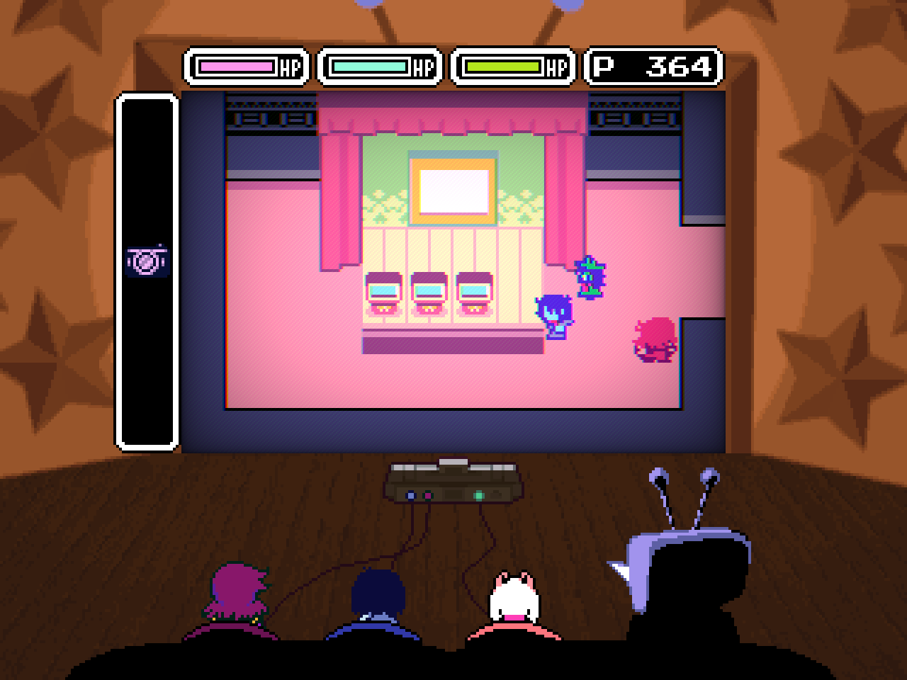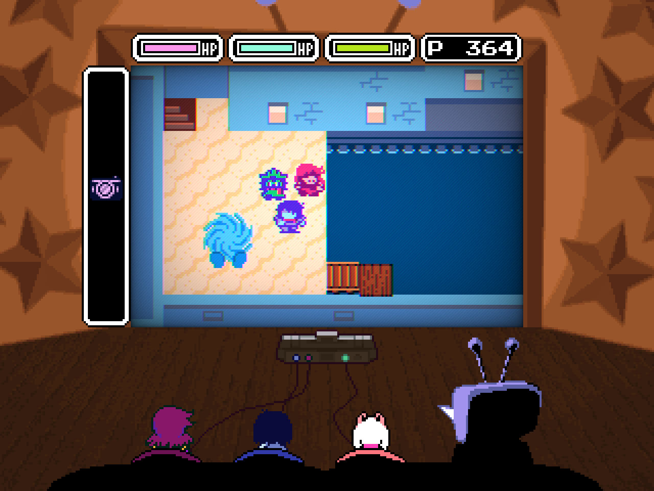 Chapter 3は…他のチャプターと同じく、元のアイデアは2016年ごろに考えはじめました。当初のコンセプトは、「通常のチャプターとは毛色の違う、小休止のようなチャプターにして、『マリオパーティ』みたいなヘンテコなボードゲームにしよう!メタトンみたいなテレビのキャラクターを登場させよう!」というものでした。『ゴースト トリック』をプレイした記憶がまだ鮮明に残っていて、これに採用されていた3Dの表現がとても好きだったので、同じような魅力を持った3Dのキャラクターを登場させたいと思いました。当時僕はちょうどKinectを買ったばかりで、モーションキャプチャをいろいろ試していました。そのときに、「MikuMikuDance」というソフトと組み合わせたら、『王様物語』の「TVランチ」みたいな3Dの踊るヘンテコテレビキャラを作れるかもしれない、なんてことを考えていました。